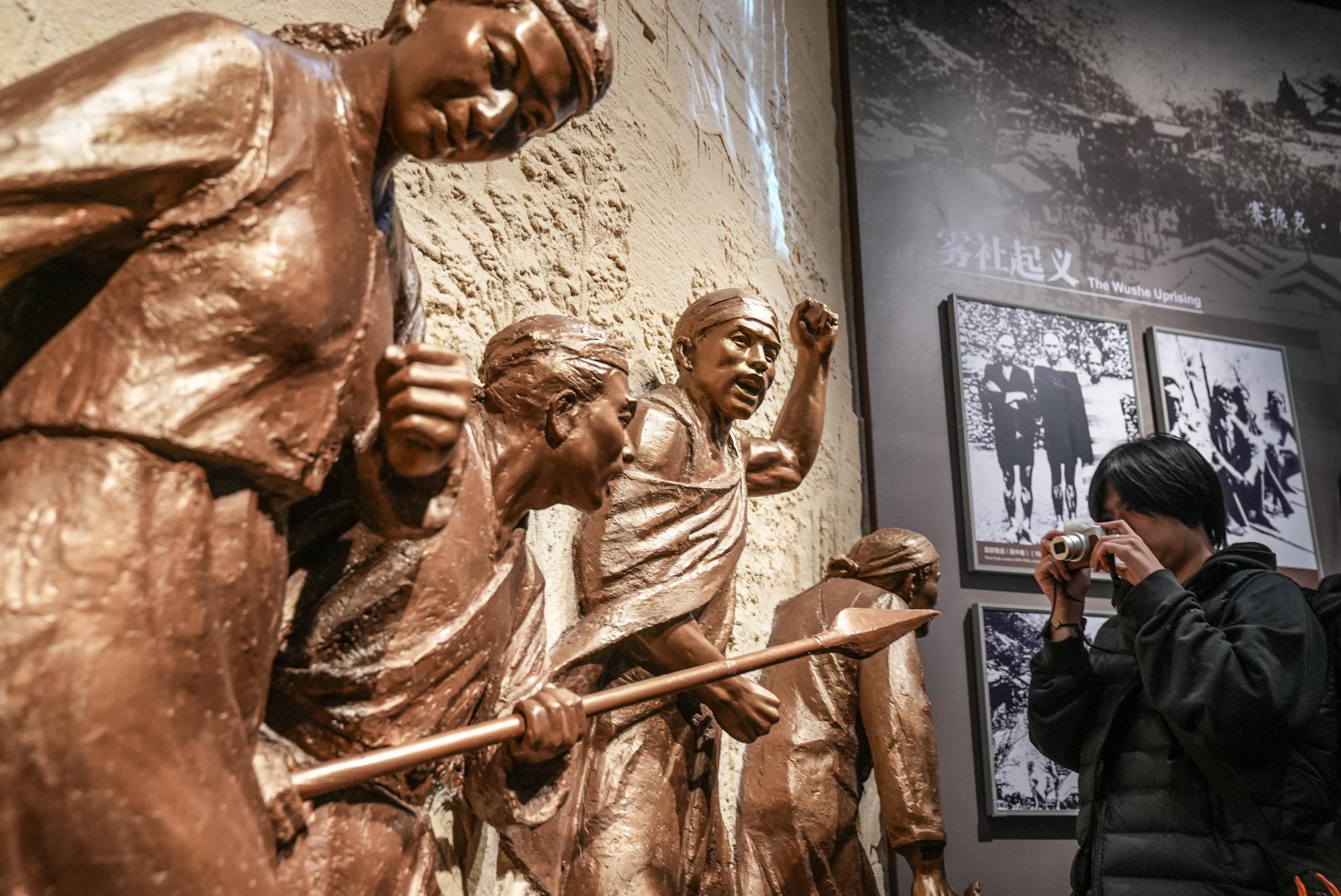 参观者驻足了解台湾少数民族发起的雾社起义。