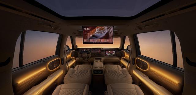 新车车内采用2+2+2六座布局,配备三把零重力座椅,其“超级右排”座椅,兼具零重力、贵妃椅、副驾向前折叠三种模式,二排右侧配备4D机械按摩功能。新车的音响系统搭载21扬声器B&O音响,还配备同级最大的11升双开门冰箱。新车还搭载了瞬净新风系统,可实现每小时400m3的换气量,并首创智控地暖系统。官方表示,新车全新标配了超过150项豪华与科技配置,涵盖智能驾驶、座舱舒适性、续航性能等多个方面。