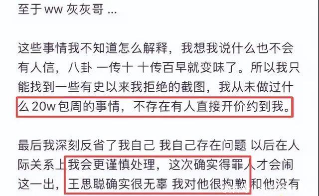 另外EL还解释自己并不是外围女。 也从来没有做到20万包周的事情。 最后直接明确表示对王思聪道歉。