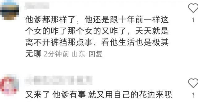 当然也有一部分网友已经对王思聪失去了好感。 认为他每天都是跟女的怎么样,也不说关心一下自己的爹。