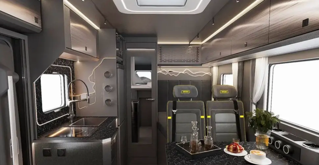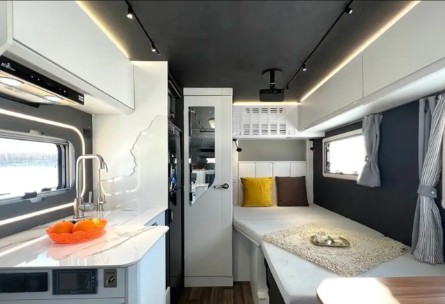 山海炮房车后车厢也是一应俱全,提供餐桌,座椅,水龙头,储物盒,天窗,空调,氛围灯,部分配置将以选装的方式提供,满足不同消费者的需求,对于喜欢长途旅行的消费者来说,比较友好。